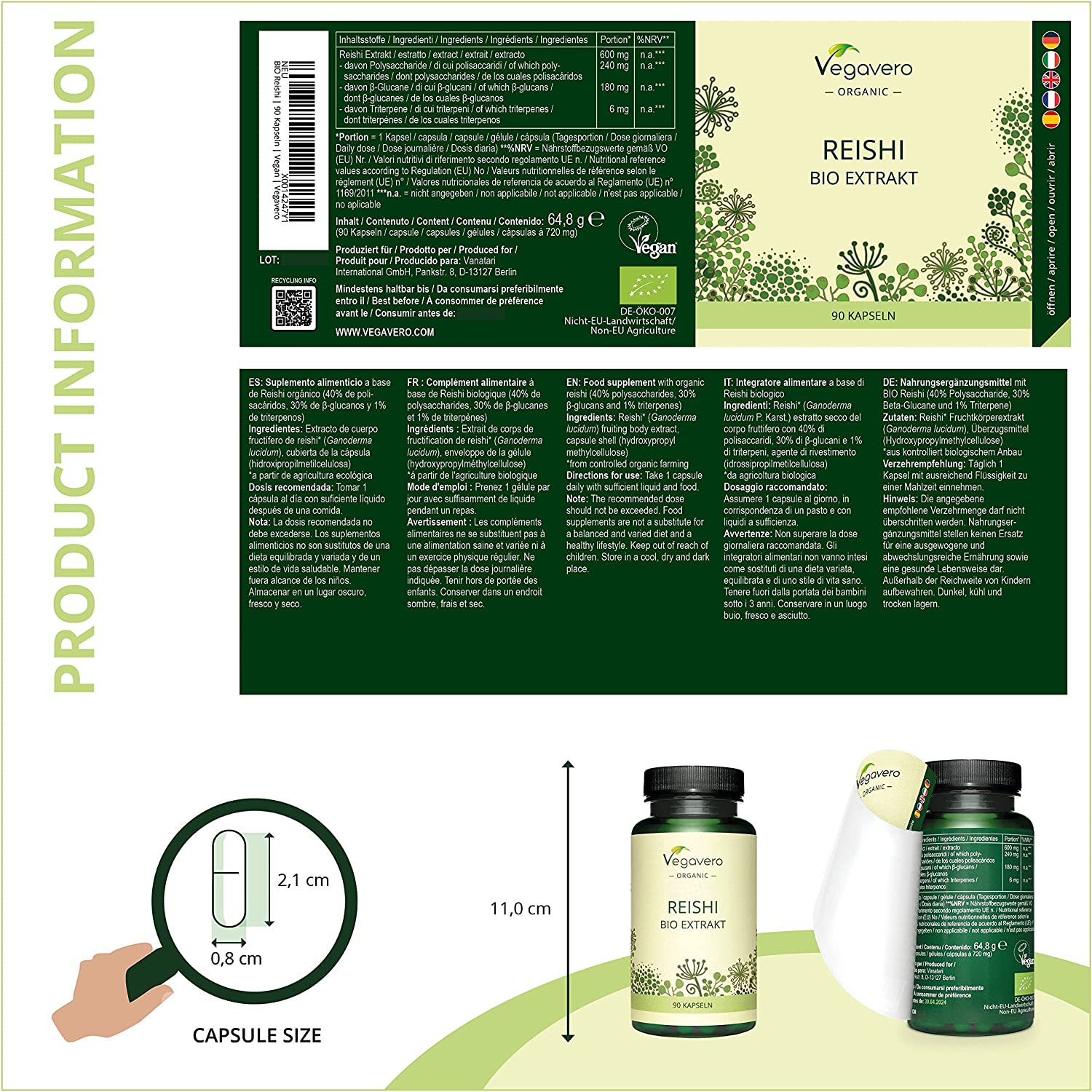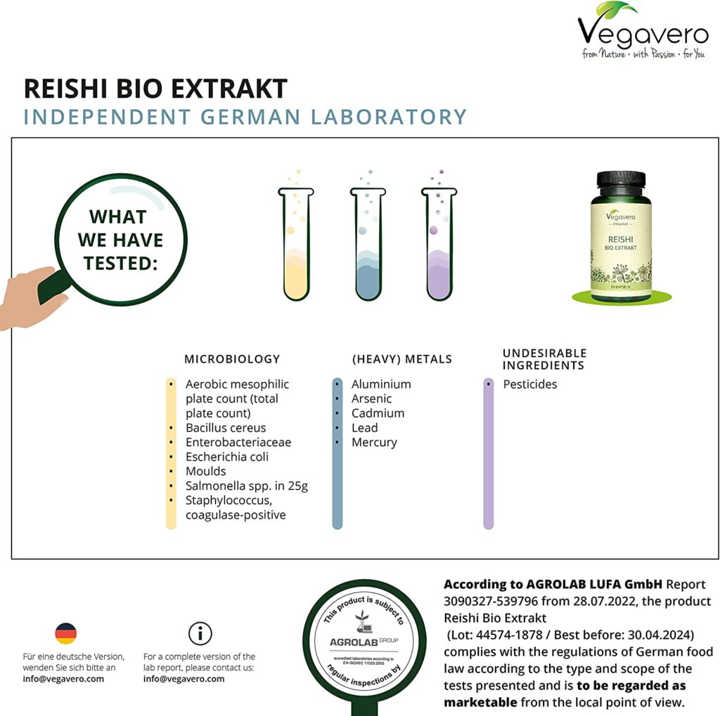 - 📍 40% POLYSACCHARIDES: Mushrooms like Reishi are known for their high polysaccharides content. Our Reishi extract is standardised to 40% polysaccharides, and 20% of the polysaccharide beta-glucan – the most important bioactive Reishi ingredient. We chose an extract derived from the fruiting body of Reishi as it is the main source of those bioactive substances! Free from artificial additives. Suitable for vegans. Per bottle: 60 capsules. Recommended dosage: 1 capsule/day. Lab tested.