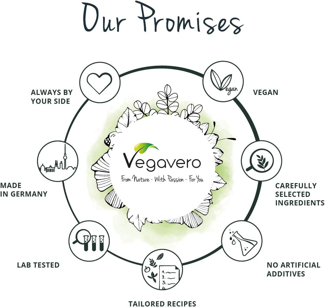 - 🌿 VEGAVERO ORGANIC: Our organic line comprises products that contain 100% organic raw materials. No chemicals or pesticides are used in organic farming. And of course, the application of genetic modifications is strictly forbidden. We believe that organically grown materials are not only better for our health but also for the environment: It protects the groundwater and reduces soil leaching. Vegavero Organic – for us, this means out of love for ourselves and for nature.